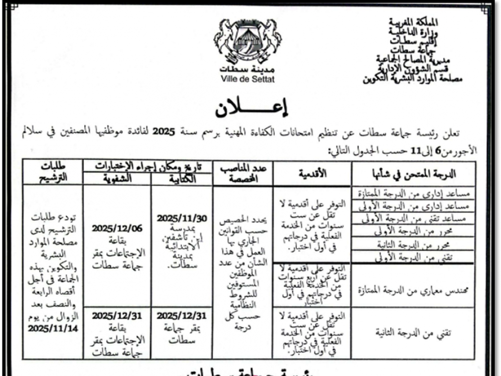 اعلان عن تنظيم امتحانات الكفاءة المهنية برسم سنة 2025