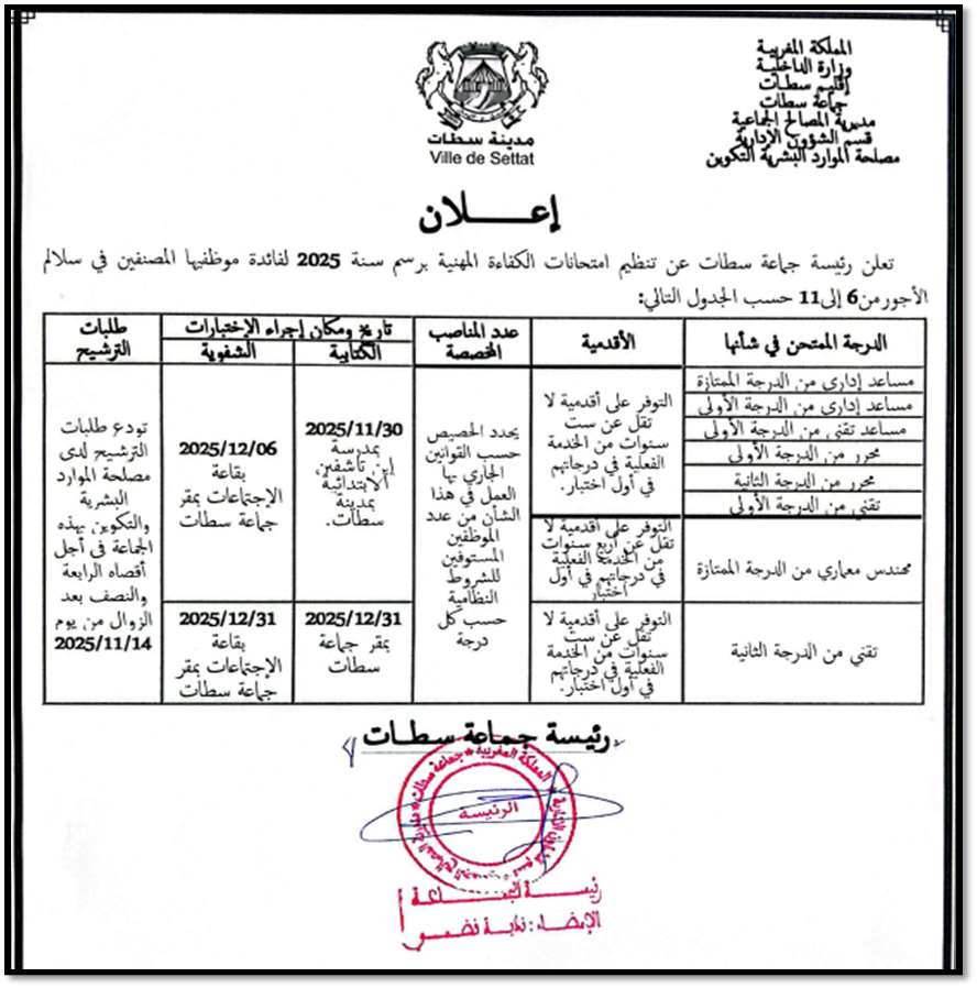 اعلان عن تنظيم امتحانات الكفاءة المهنية برسم سنة 2025